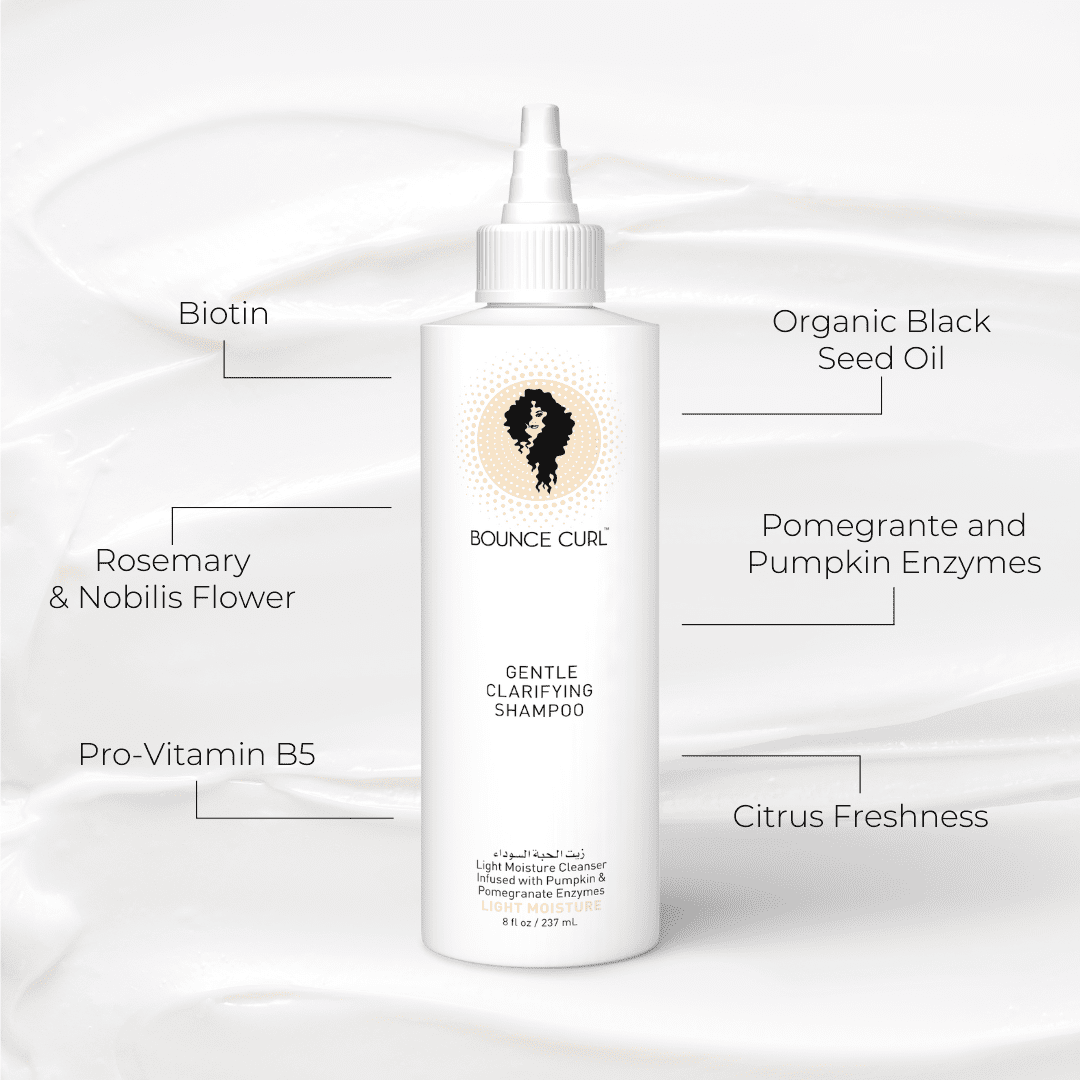 Enjoy the refreshing citrus scent and deep cleanse of Bounce Curl’s Gentle Clarifying Shampoo, leaving hair revitalized.