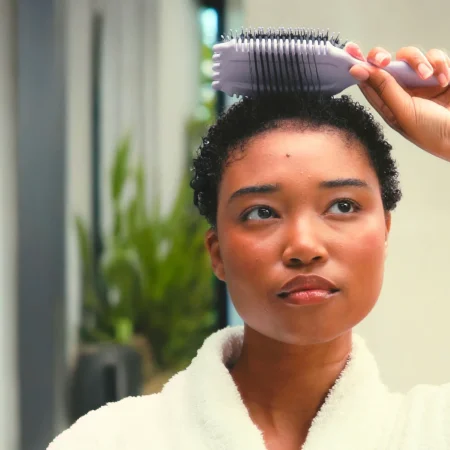 Bounce Curl’s Define EdgeLift Brush, with its custom, patented design, offers a revolutionary styling experience. Crafted from PLA materials, it’s designed to create smooth, medium-sized clumped curls while offering precision parting and heatless curling. Perfect for wavy, curly, and coily hair, it delivers defined curls with ease.